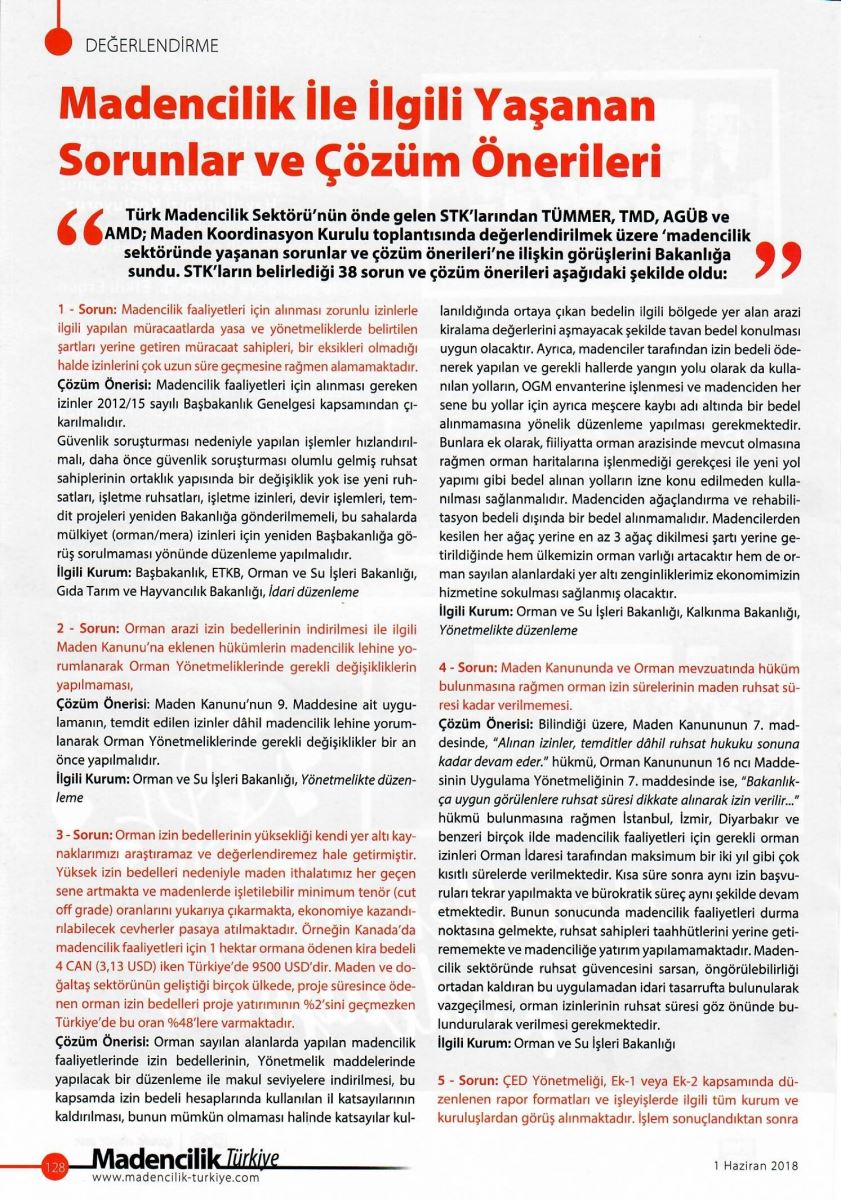 Madencilik İle İlgili Yaşanan Sorunlar ve Çözüm Önerileri Raporumuz Madencilik Türkiye Dergisinde Yayınlandı