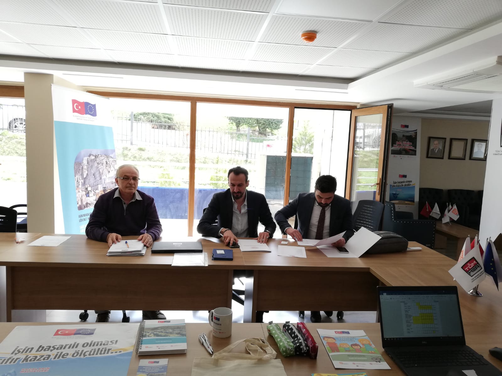 Türkiye ile Avrupa Birliği arasındaki Katılım Öncesi Mali Yardım Aracı (IPA)’nın “İstihdam, Eğitim ve Sosyal Politikalar Sektörel Operasyonel Programı” kapsamında, Avrupa Birliği’nin desteğiyle finanse edilen Farkındalık Artırımı ve Deneyim Paylaşımı Yoluyla Güvenli Mermer Ocak İşletmeciliği Projesi (TÜMMER Projesi) adlı ve TREESP1.1OHSMS/P-03/60 numaralı projemizin uygulanması kapsamında mermer ocaklarında yaşanması muhtemel 7 iş kazasını sanal gerçeklik ortamında simüle etmekteyiz. Projemizin Tematik İzleme Uzmanları Sn. Alpay Bulut ve Sn. Mehmet Eren Sökmen'i Birlik ofisimizde misafir ettik. MİSC Yazılım firmasından Sn. Enver Salih Yaylacı'nın 5. sanal gerçeklik senaryomuzu sunduğu toplantıda Tematik Uzmanlarımız VR setimizi ve VR simülasyonlarımızı deneyimledi. Ayrıca, proje kapsamında verilecek eğitim/seminerlerde kullanılacak olan işçi, işveren, işçi ailesi ve işçi çocuklarına yönelik eğitim kitlerimizi ve görünürlük materyallerimizi incelediler.