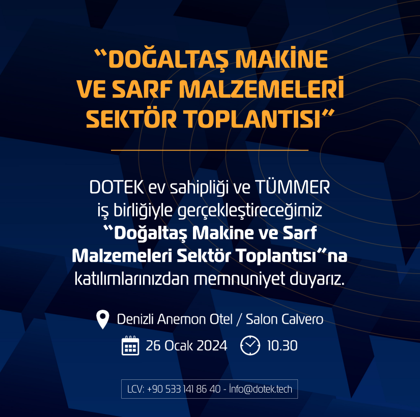 DOTEK ev sahipliği ve Birliğimiz iş birliğiyle 26 Ocak 2024 Cuma günü saat 10:30’da Denizli Anemon Otel’de “Doğaltaş Makine ve Sarf Malzemeleri Sektör Toplantısı’ gerçekleşecektir.