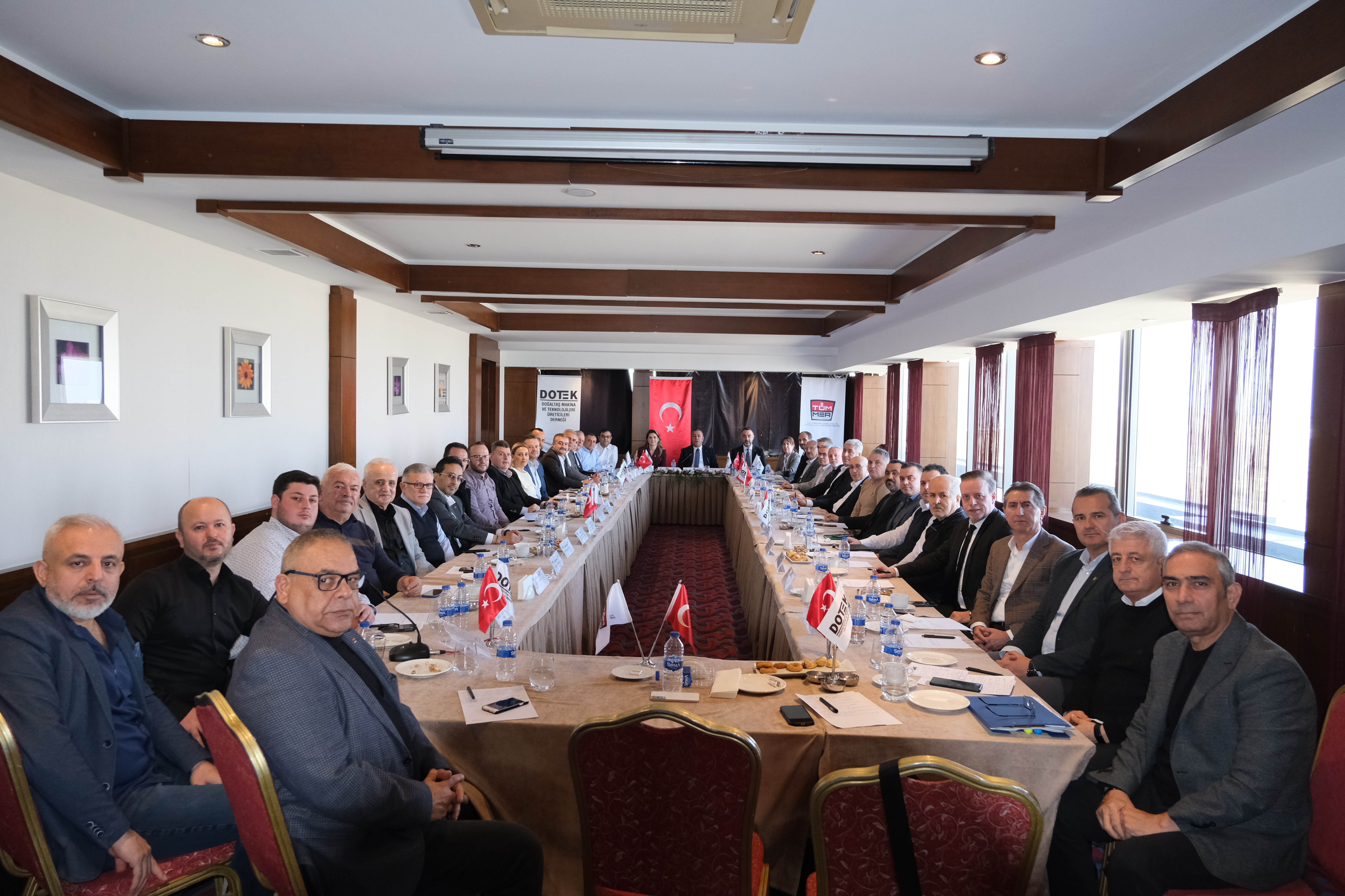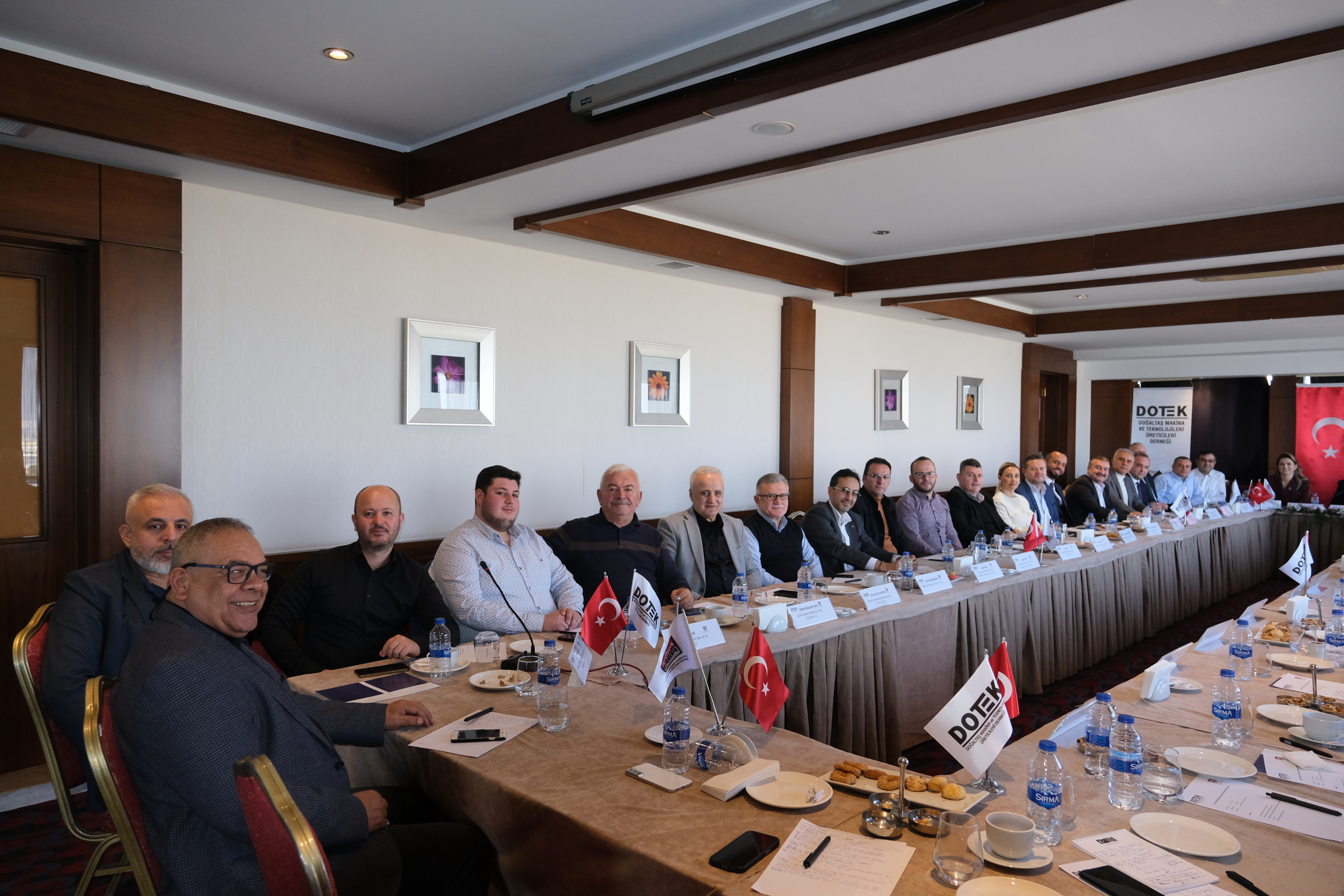 26 Ocak 2024 Cuma günü saat 10:30’da Denizli Anemon Otel’de DOTEK ev sahipliği ve Birliğimiz iş birliğiyle Doğaltaş Makine ve Sarf Malzemeleri Sektör Toplantısı gerçekleştirilmiştir. Mermer ve doğaltaş makineleri üreticilerinin bulunduğu toplantıda, sektörümüzün içinde bulunduğu güncel durum değerlendirilerek yaşanan sorunlara dair istişarelerde bulunulmuştur. TÜMMER YK Başkanımız Sn. Hanifi Şimşek, DOTEK YK Başkanı Sn. Zeynep Ekiz Atıcı ve DENMERDER YK Başkanı Sn. Mehmet Serter'in açılış konuşmalarıyla başlayan toplantıya TÜMMER Yönetim Kurulu üyelerimiz ve Genel Sekreterliğimiz katılım sağlamıştır.