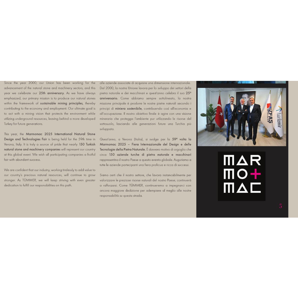 İtalya’nın Verona şehrinde bu sene 59. kez düzenlenen Marmomac 2025 Uluslararası Doğal Taş Tasarımı ve Teknolojileri Fuarı konulu yazımız Stone Life Marmomac özel sayısında.