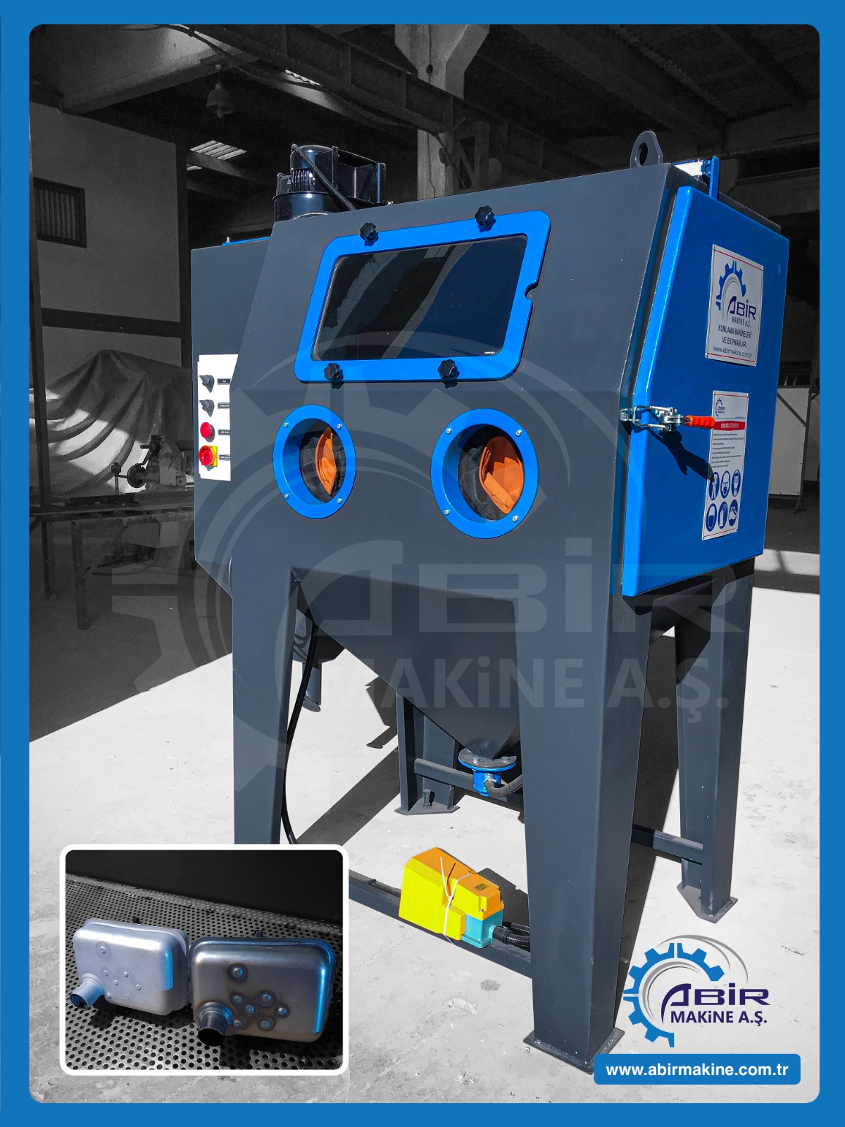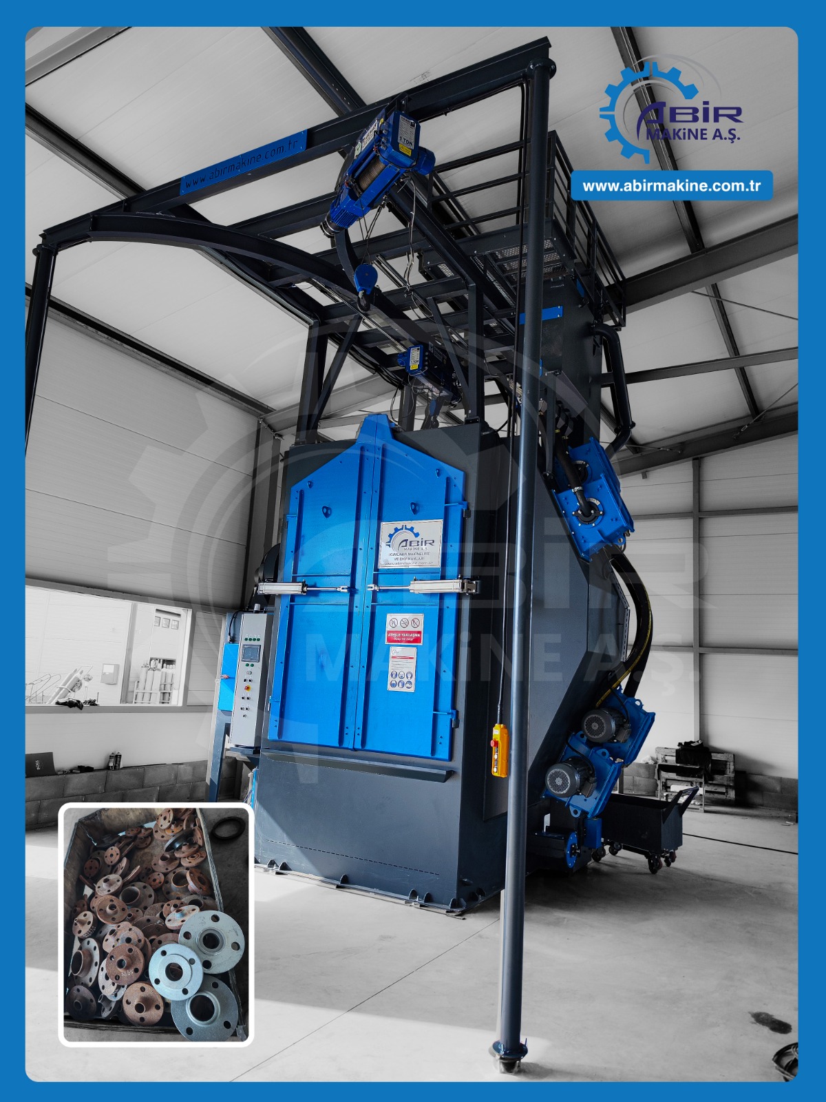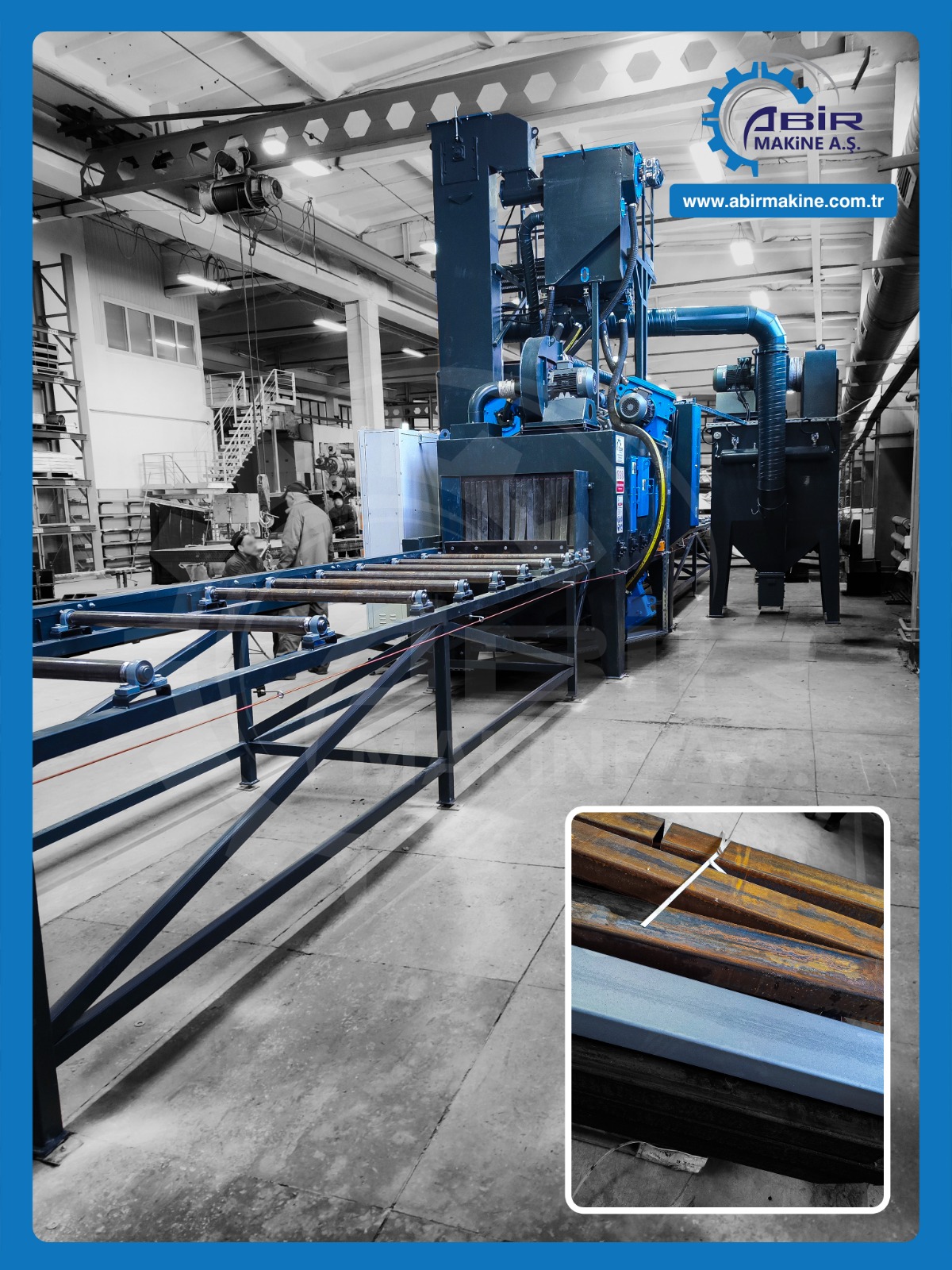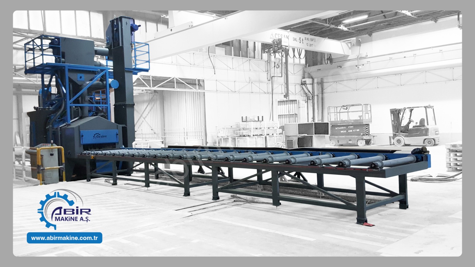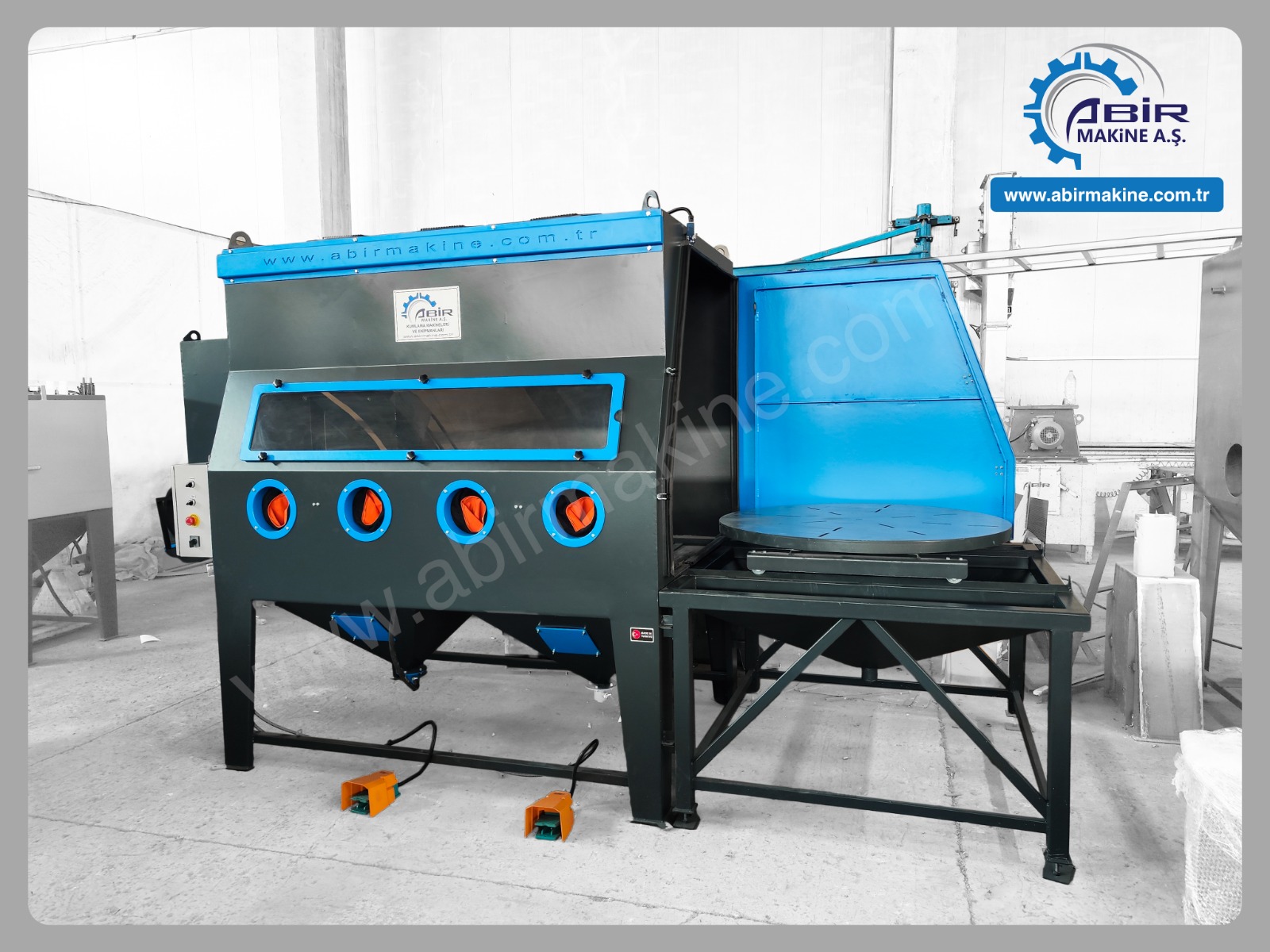 Abir Mak. A.Ş. olarak standart kumlama makinaları dışında, müşterilerine farklı çözümler sunarak, amaca yönelik özel kumlama makinaları da üretmekte, bu sayede müşterilerin, daha düşük maliyetle, daha kaliteli, daha verimli sonuçlar almasını sağlamaktayız.